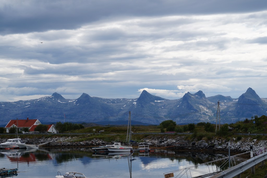 We drove from Trondheim to Sandnessjøen and took the ferry out to Dønna in 2017 in connection with visiting friends who live there. It is the first time we have driven a car this far north, and it was an unforgettable experience to drive through this beautiful landscape. We also drove around the island municipality of Dønna, which has a large archipelago consisting of islands, islets and reefs. Here we saw Dønnmannen with its special rock formation, Dønnes church, Dønnesfjellet with a view to Lovund and Træna and small fishing villages and more. The beautiful nature there was a fascinating sight.