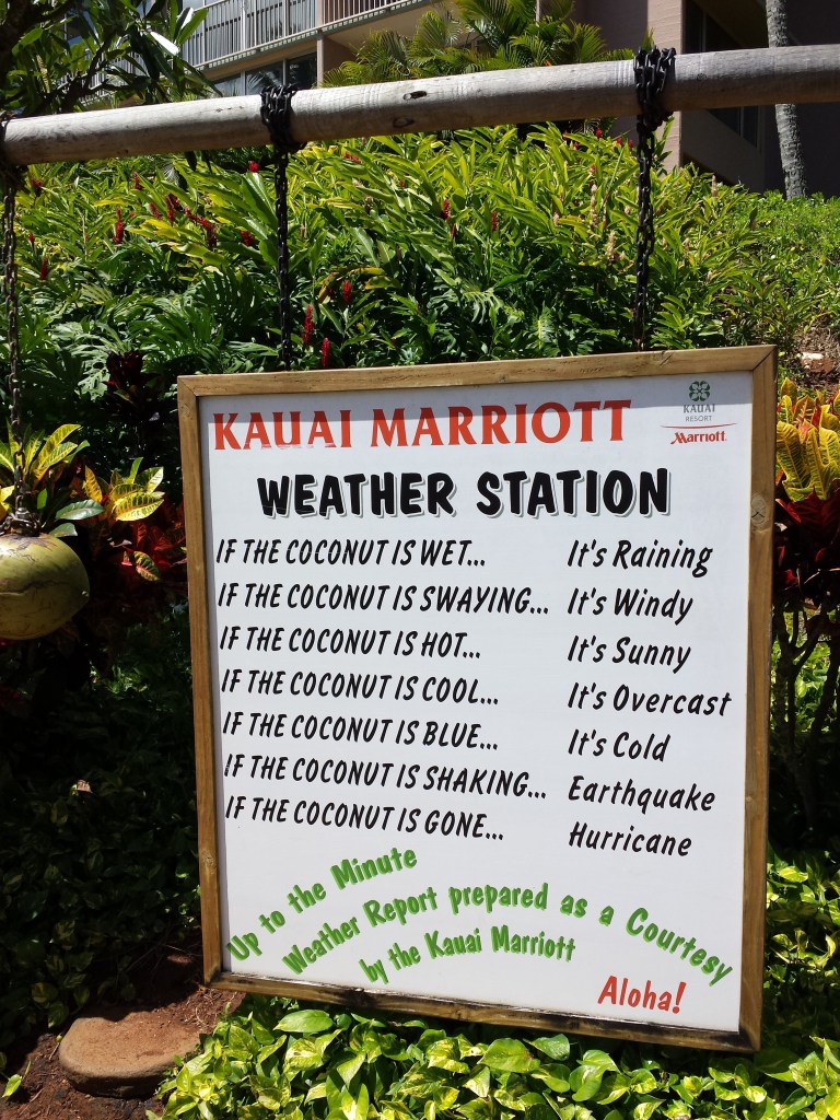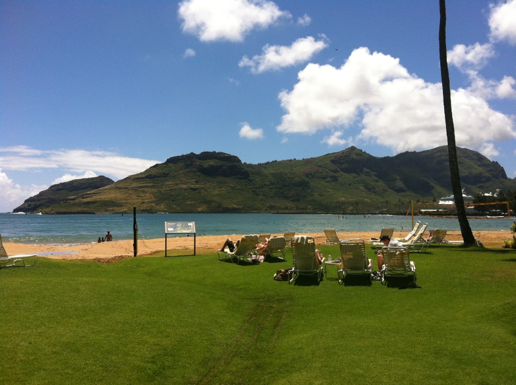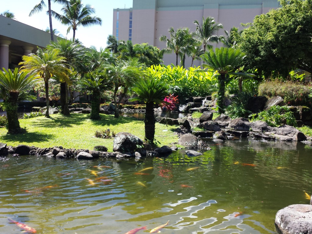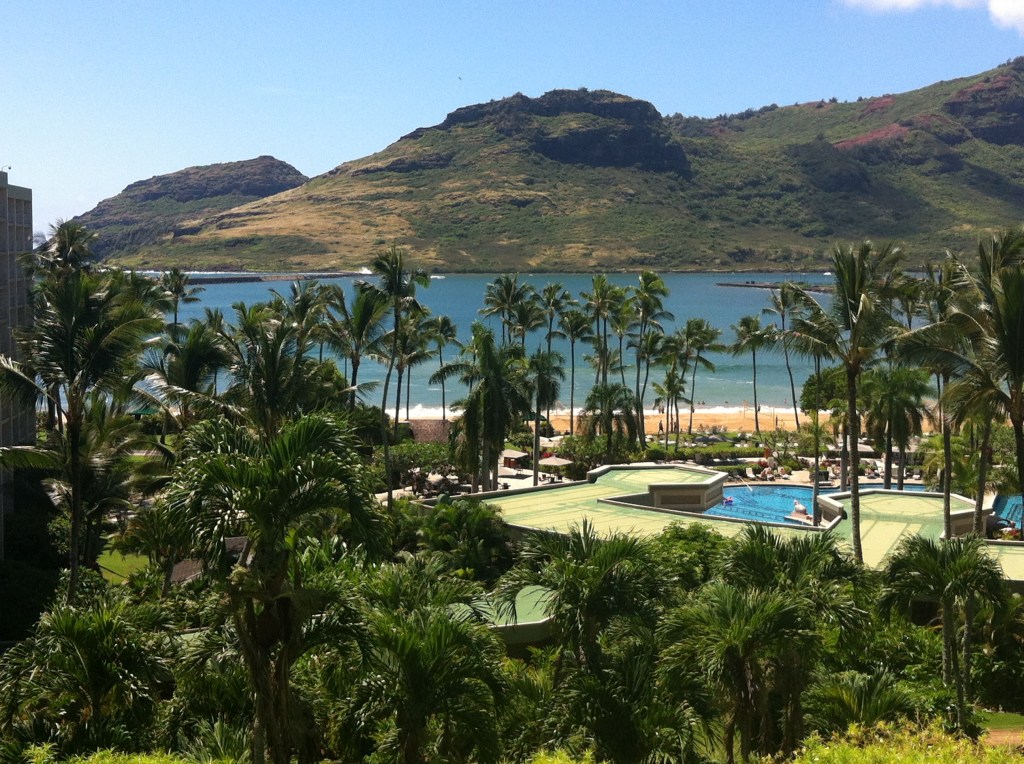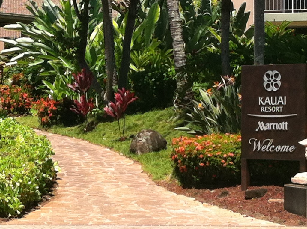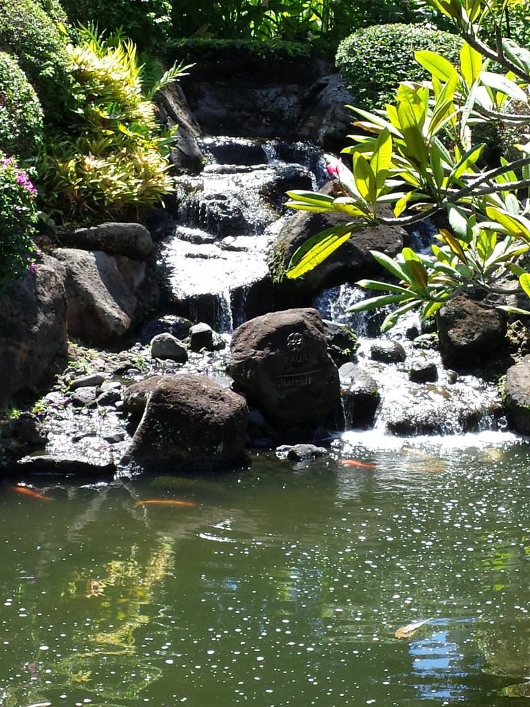Kauai er av vulkansk opprinnelse og er den eldste og fjerde største av Hawaiiøyene. På grunn av regnskogen og den frodige vegetasjonen er øya kjent som «The Garden Isle». Det var James Cook som oppdaget Kauai i 1778. Kauai er i dag et populært reisemål for turister og surfere. Tidligere var dyrking av sukkerroer den viktigste eksportvare, men den har i de senere årene blitt erstattet av blant annet kaffeplanter. Øya er dessuten kjent som innspillingssted for filmen «Jurassic Park». Vi besøkte blant annet hotellet «Kauai Marriot Beach Club» som var omgitt av en utrolig vakker beplantet park med svømmebassenger, fiskedammer, eksotiske fugler med mer. (Wikipedia). Det var utrolig godt å vandre rundt i denne parken og ta inn lukten av blomstene, se på fiskene og endene som svømmer sammen. Her kan en vandre rundt og finne en ro som er helt spesiell.