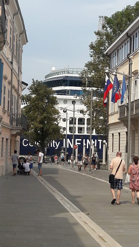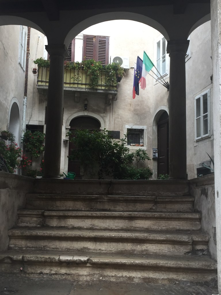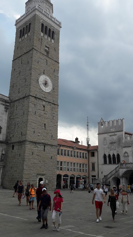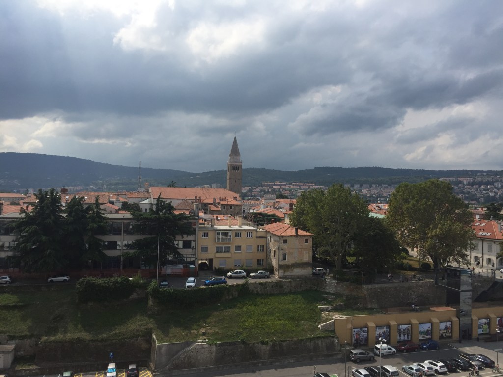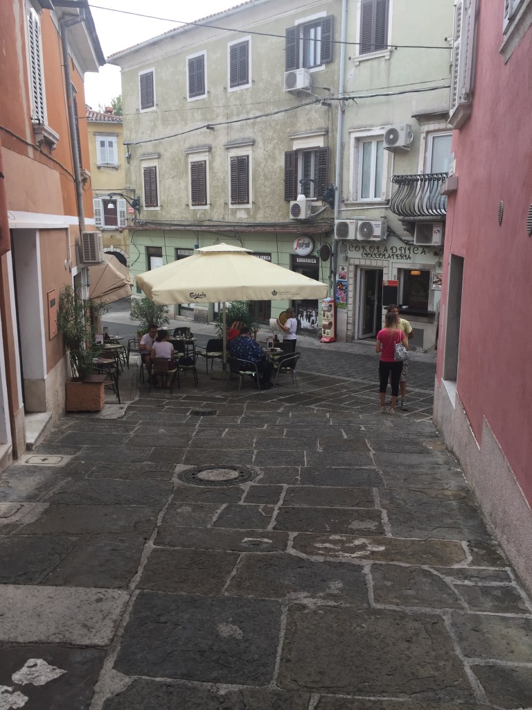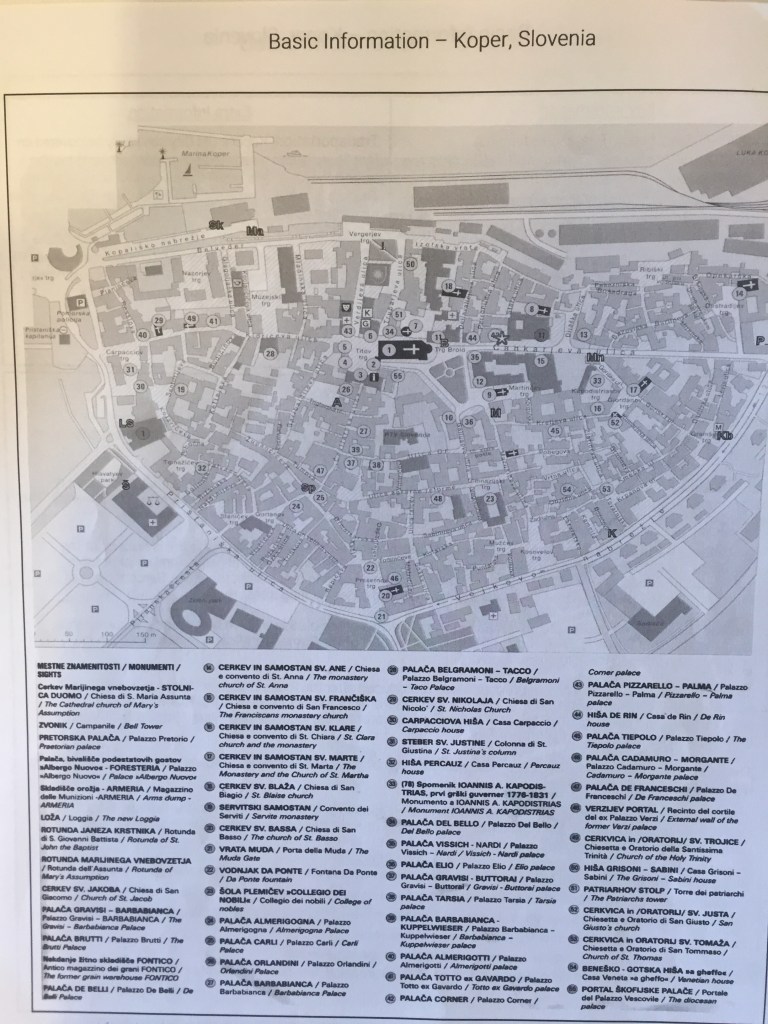 Koper is a municipality, coastal city and Slovenia’s most important port. It is an important tourist center but also has industry. The cityscape has a Venetian feel, with a cathedral and town hall from the 16th century. The city is officially bilingual with Slovenian and Italian. It was exciting to come to Koper and wander through the narrow streets with great shops, experience folk life, cozy outdoor restaurants and more. This is a city we would like to return to. (Wikipedia; Google translated).