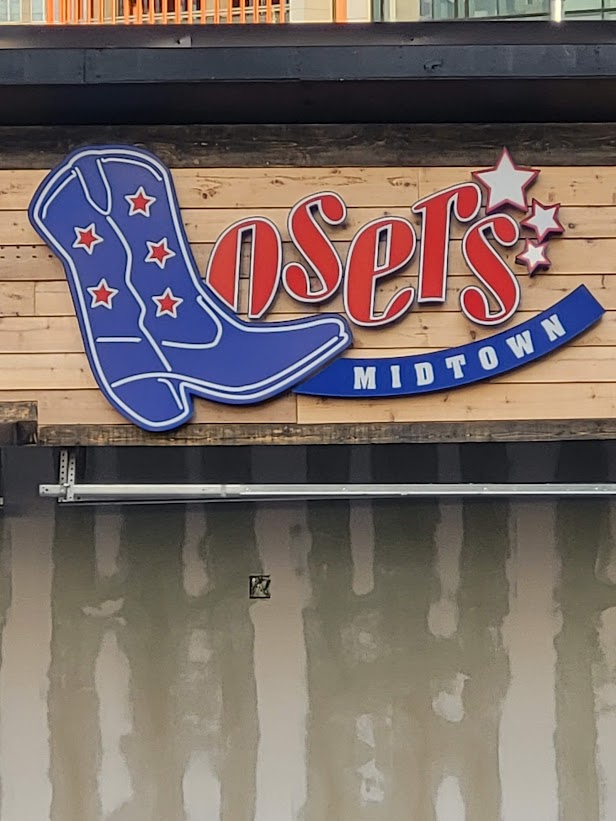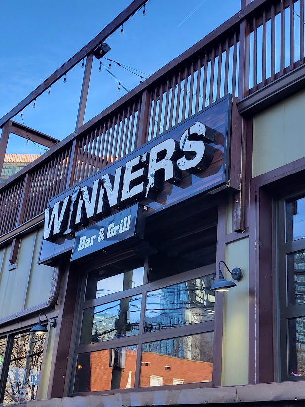 WINNERS & LOSERS – From outside – two side-by-side buildings Winners Bar and Grill – Live music, Lunch Specials, Cold drinks Losers Bar and Grill – Live music, Serving classic bar eats and Drinks
