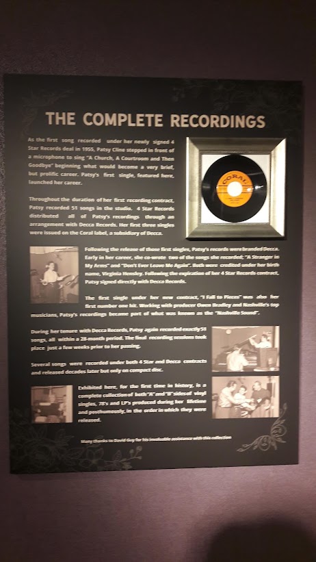 THE PATSY CLINE MUSEUM Patsy Cline left the world tragically at age of 30 in 1963. The Patsy Cline Museum celebrates the life of the legendary songtress and features hundreds of never before seen artifacts, personal belongings, videos and much more. Located above the Johnny Cash Museum.
