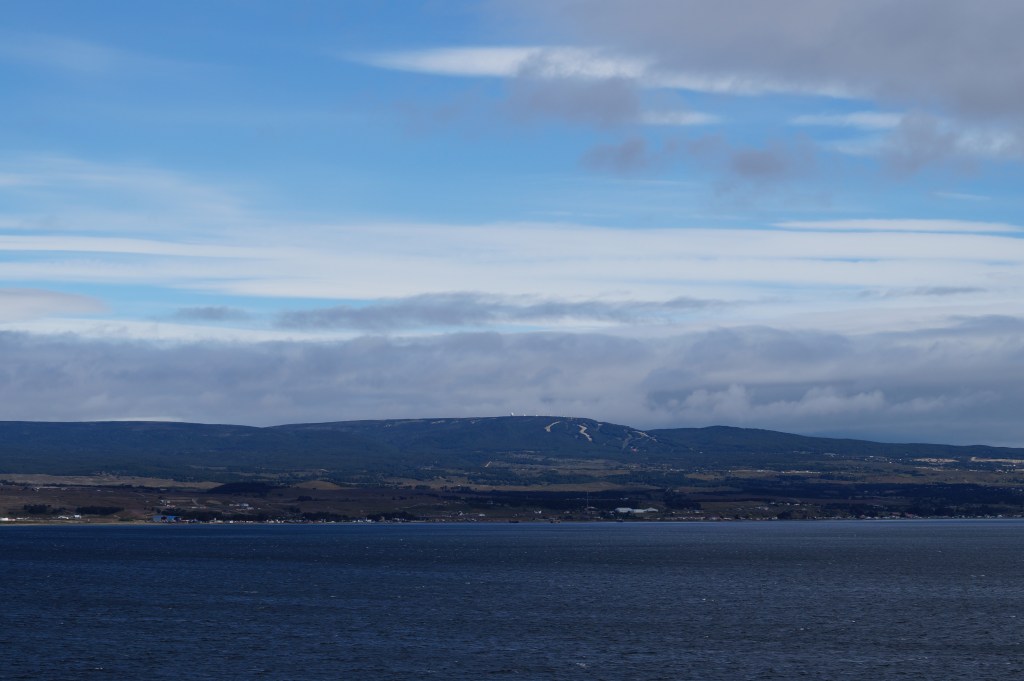 Punta Arenas is located in the very south of Chile on the shores of the Strait of Magellan, and is the world’s southernmost city with 131,592 inhabitants in 2017. (Wikipedia). The inhabitants there are of German, English, Swiss, Italian, Irish and Croatian origin. From about the 1850s, the town was used as a collection point for immigrants and as a penal colony. In the areas surrounding the city, gold deposits were found, which led to the city attracting adventurous gold diggers. The gold rush ended at the beginning of the 20th century. As a result of large pastures, sheep farming has become more important. The pictures we have here are taken from the cruise ship.