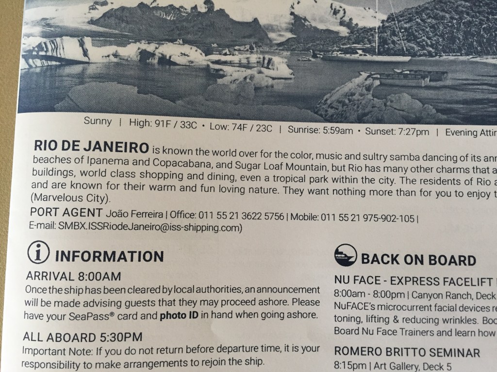 Vi har hørt og lest en del om Rio de Janeiro, som med sine 6 747 815 innbyggere (2020) er den nest største byen i Brasil etter Sao Paulo (Wikipedia). Den har en rekke kjente landemerker som vi gledet oss til å oppleve – blant andre Kristusstatuen, Sukkertoppen, taubanen (Sugarloaf Mountain Gondola), stranden Copacabana og det populære karnevalet som arrangeres to uker før fasten begynner og slutter på fetetirsdag. Vi var med på tur som ble arrangert av cruiseselskapet, og tok blant annet taubanen opp til Sukkertoppen. Da vi kom opp i høyden – ble vi meget imponert over den flotte utsikten over byen. For å kunne oppleve alt vi ønsket måtte vi ha hatt flere enn den ene dagen vi var der.