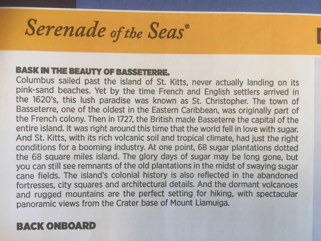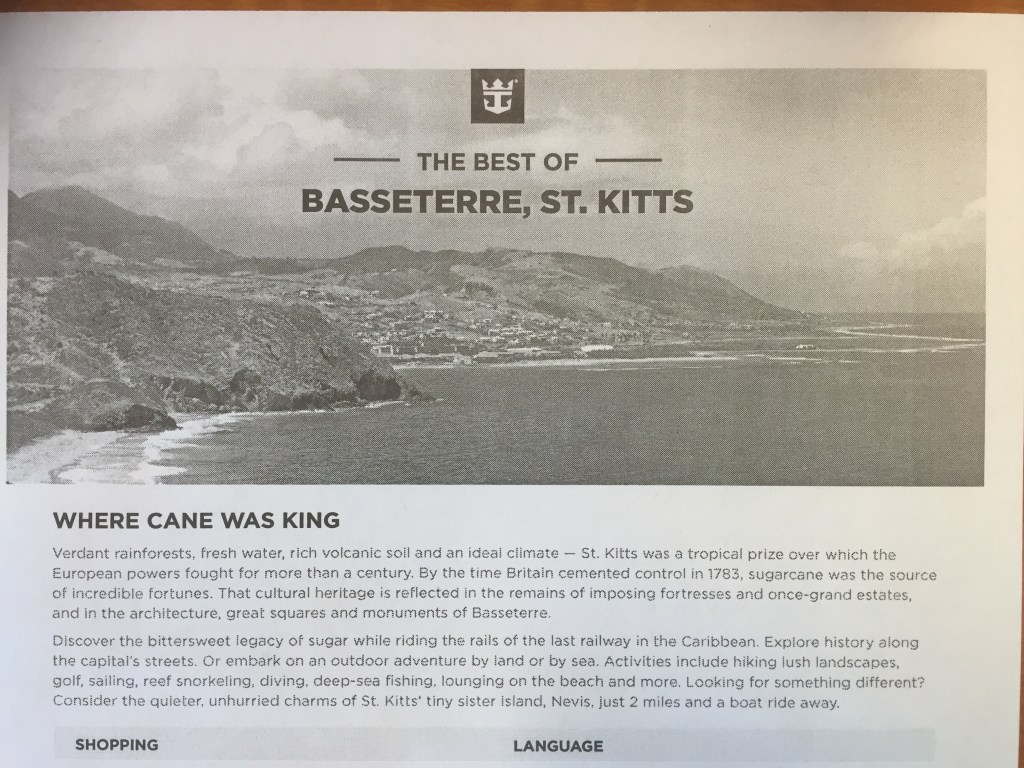 We were on Saint Kitts and Nevis in connection with a cruise in the Caribbean. We chose to walk around the town to get an insight into how people lived there, had a trip to the local shops, had lunch at a pub.