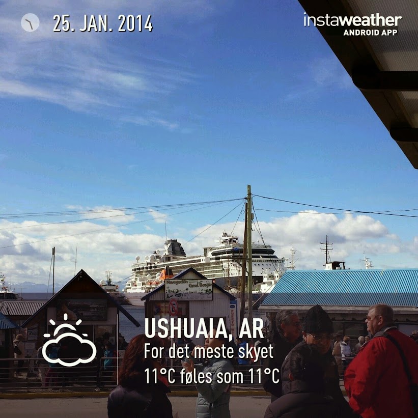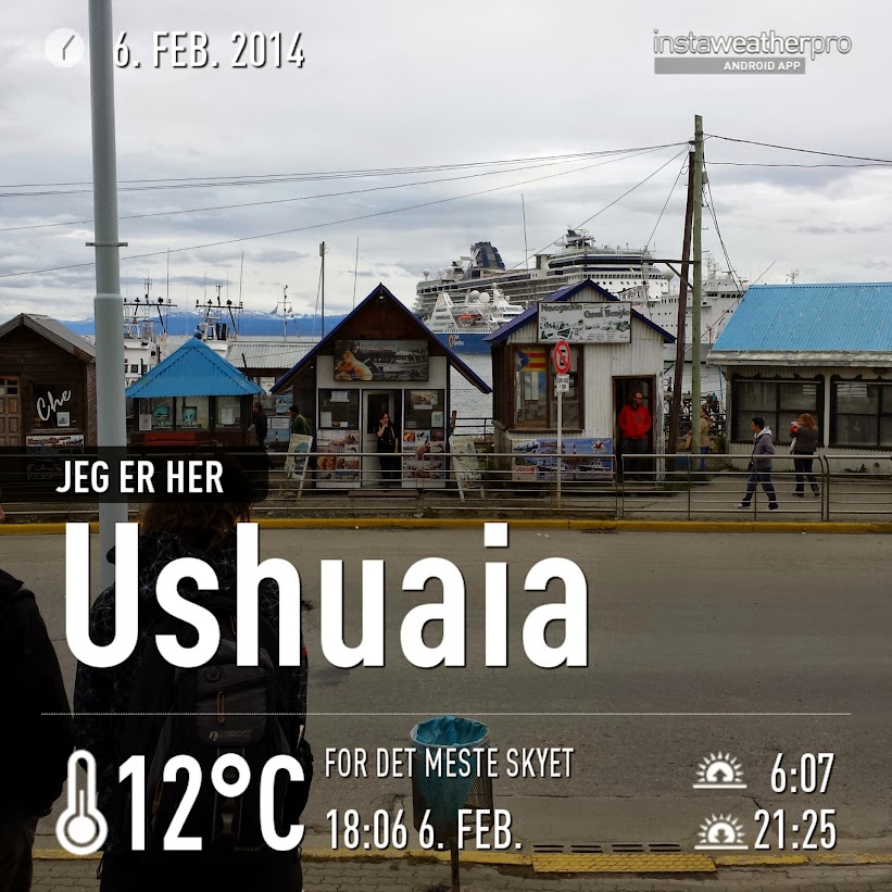 Ushuaia, Argentina, er en voksende by med ca. 57 000 innbyggere (2010). Den er en av verdens sydligste byer og er hovedstaden i den argentinske provinsen Tierra del Fuego, også kalt Ildlandet som følge av at den indianske urbefolkningen , Ildlenderne, tente bål langs strendene. Byen ligger i et fjellrikt landskap hvor de høyeste fjellene er over 2000 meter høye. Ushuaia har tidligere vært en straffekoloni for kriminelle – noe som vi kan se av bildene fra utstillinger i byen. Fangene ble nybyggere og bygde opp stedet på egen hånd . Vi har vært i Ushuaia to ganger og ble fasinert av byen og naturen der. Ushuaia er en by vi kunne tenke oss å dra tilbake til.